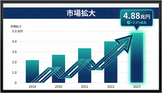 こうした背景を受け、国内BPO市場は拡大傾向にあります。矢野経済研究所の調査によると、2023年度のBPOサービス全体の市場規模は、事業者売上高ベースで前年度比3.9%増の約4兆8849億円と推計されています。2024年度も引き続き成長が予測されており、特に中堅・中小企業への普及が進んでいるとされています。