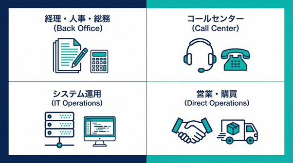 BPOサービスで委託される業務にはさまざまなものがありますが、主に以下のような領域が対象となります。