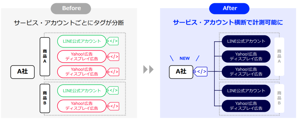 企業内でタグを1つに集約することで、タグ管理の工数が削減されるほか、各サービスを横断したデータの蓄積・活用が可能となり、運用の効率化と高度化が期待できます。